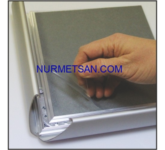 – Standart afiş çerçevesi modelimiz gümüş rengidir. İsteğe bağlı olarak farklı RAL renklerinde üretilebilir.