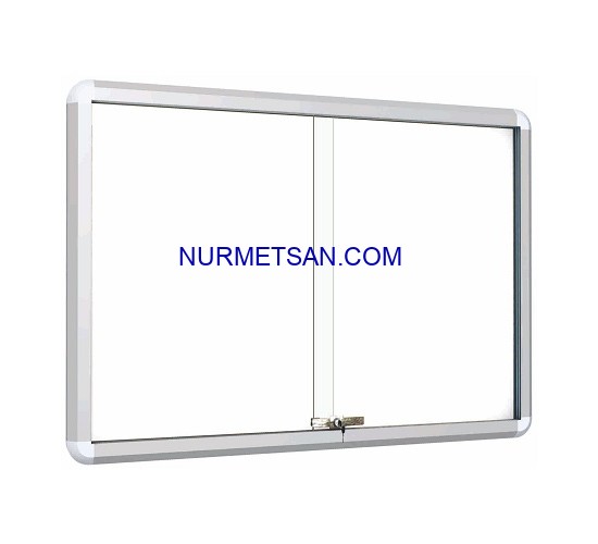 Manyetik Zeminli Bilyalı Sürgülü Kapak İlan Dolabı farklı kapasitelerde görsellerinizi sergileyebileceğiniz, duvara monte bir üründür. Ürün kapakları 5 mm. temperli camdan yapılmış olup bilya mekanizması üzerinde kayarak açılır ve kilitlidir.