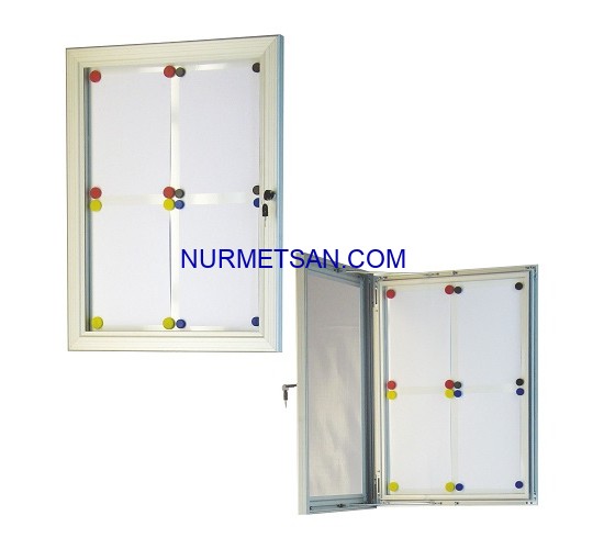 Manyetik Zeminli İlan Dolabı görsellerinizi sergileyebileceğiniz, duvara monte, birçok boyut seçeneğine sahip bir üründür. Ürün kapağı isteğe göre 4 mm. temperli cam veya kırılmaz akrilik camdan yapılmıştır.