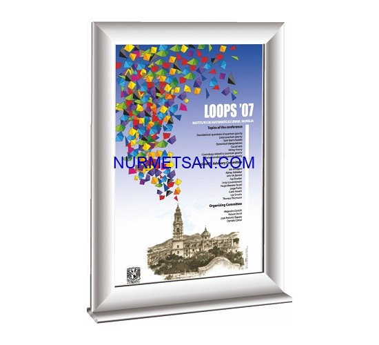 Çift taraflı poster çerçevesi afişlerinizin 4mm. kalınlığı geçmediği her durumda kullanılabilir.