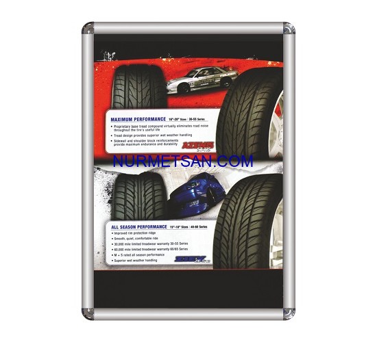 Açılır kapanır çerçeve profili sayesinde pratik şekilde kullanılan ürün ince çerçeve profiliyle afişleri öne çıkarır. İnce çerçeveler, daha çok küçük görselli afişlerle kullanılmakla birlikte, afiş dizaynınıza göre bu seçim değişebilmektedir.